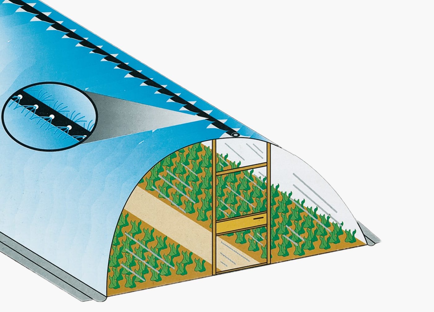 Air conditioning pipe for greenhouses. SBRINEX is a black, micro-perforated polyethylene pipe designed to prevent the risk of icing on greenhouse films. Installation in the core part of the greenhouse (inside). The pipe nozzles should be facing upwards. Manufactured by: Plastic Puglia (Italy)